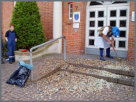 Am 27.Mai 2009 wurde unser Kamerad Christian Franck 30 Jahre alt. Da er noch nicht in festen Händen ist , musste er vor dem Rathaus fegen.