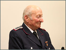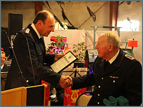 Während der Jahreshauptversammlung am 11.Jan.2013 wird Ehrenbrandmeister Wilhelm Kamerichs für 50 jährige Mitgliedschaft geehrt
