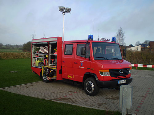 Des weiteren verfügt das TSF-W über ein Stromaggregat von 8,5 kVA und einem Lichtmast m. 2 x 100 W Strahlern, die eine Einsatzstelle sehr gut ausleuchten können, welche das Fahrzeug schon beim 1.Einsatz in Eckhorst bewiesen hat. Das Fahrzeug hat ca.90.000, - € gekostet.